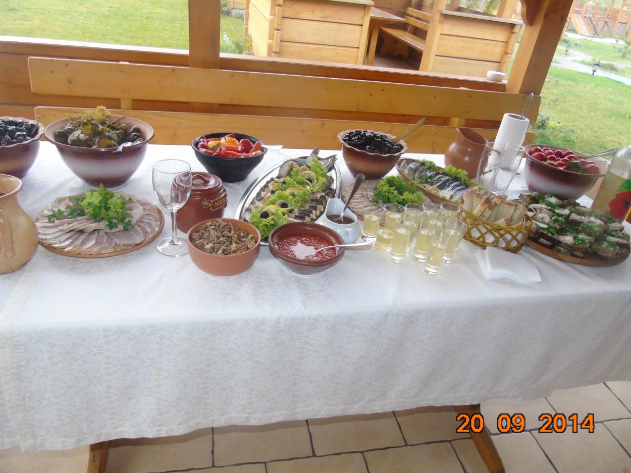 В приготуванні їжі використовуємо тільки натуральні українські продукти.Всі страви ми готуємо самі.Величезний асортимент наливок,холодих і гарячих закусок.