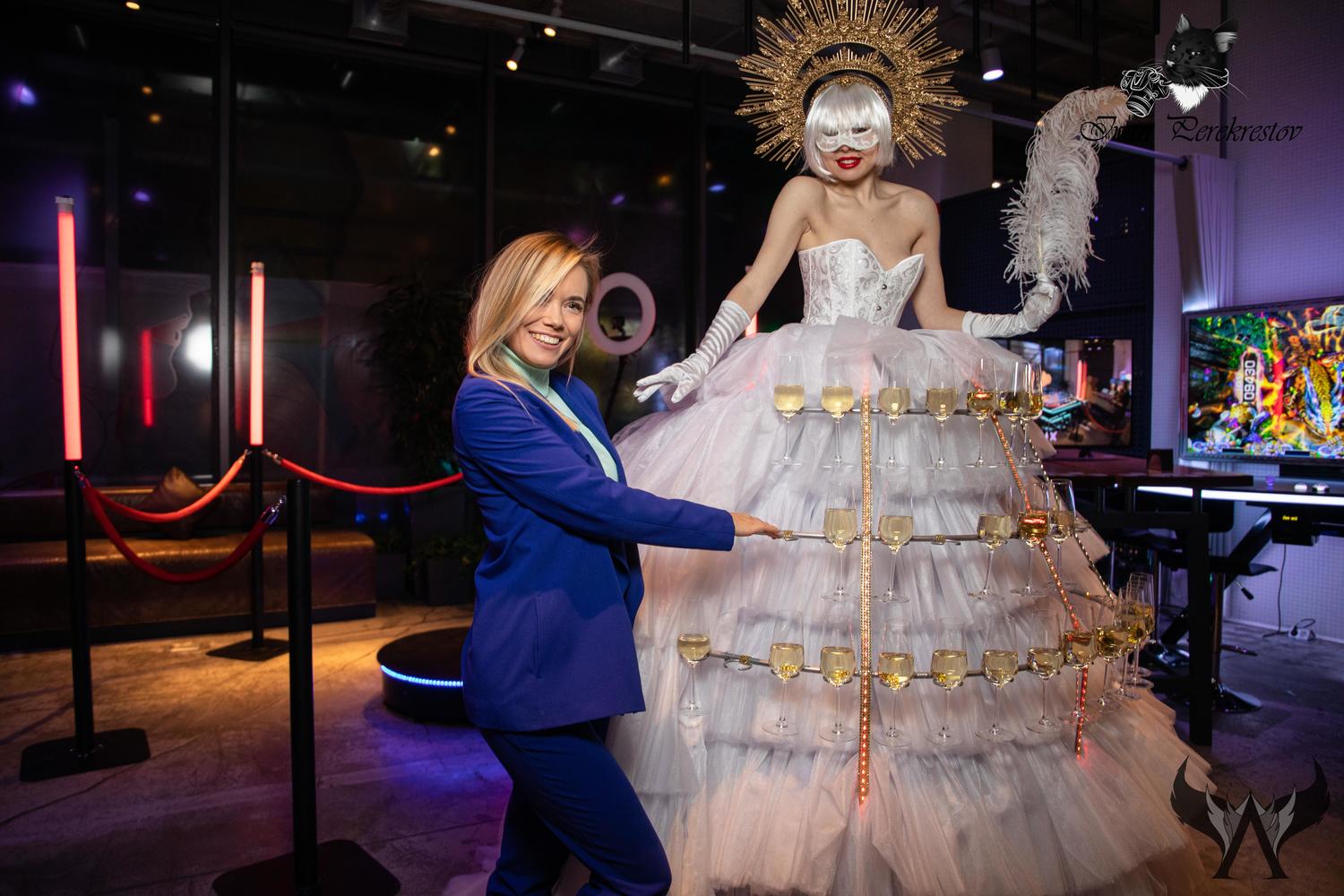 Висока ЛЕДІ-фуршет (статична, висота - 2,3м ,сервірування - 36 келихів).