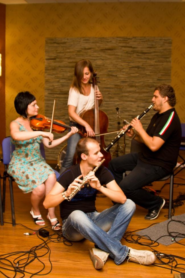 ...Fusion - слияние. Слияние гармонии, мелодии, голосов, тембров. Смешение чувств и эмоций...Инструментальный квартет "Fusion" . Музыкальное сопровождение банкетов, фуршетов, корпоративов, свадеб и других торжеств. Нежность, воздушность флейтового и скрипичного звучания в сочитании с бархатными, теплыми тембрами кларнета и виолончели, создадут на вашем празднике приятную атмосферу и погрузят в мир живого звука. В репертуаре квартета музыка различных стилей. Начиная от Баха и заканчивая Леди Гагой. Танго, легкий джаз, популярная классическая и современная музыка в исполнении профессиональных музыкантов. Индивидуальный подбор репертуара.